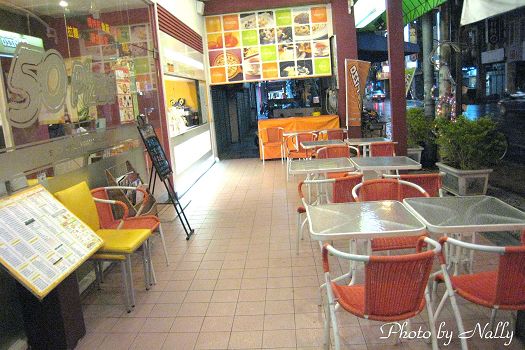 外頭是落地窗的玻璃門,門上刻有50pizza字樣,個人蠻喜歡這樣的設計的。