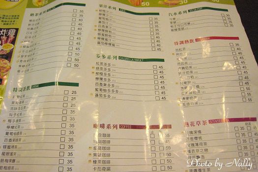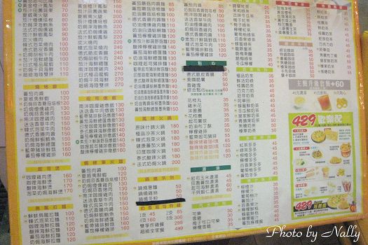 仔細一看,種類真的超多啦,正面是主餐、背面是飲料咖啡類,