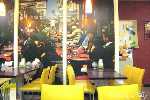 牆壁上有著大幅國外岸邊用餐的照片,相當有氛圍,
