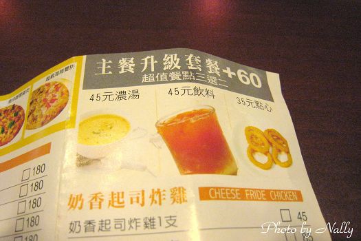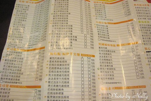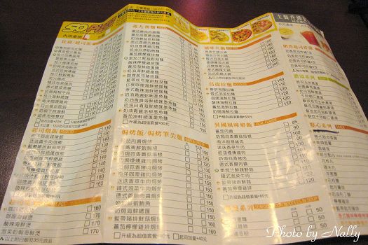 舉凡比薩、咖啡、飲料、麵類、鍋類、義大利麵、焗烤等,都有。