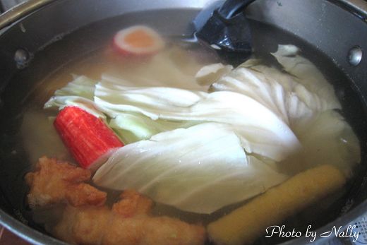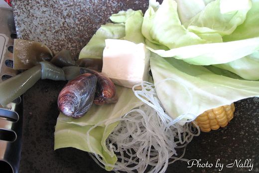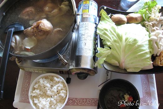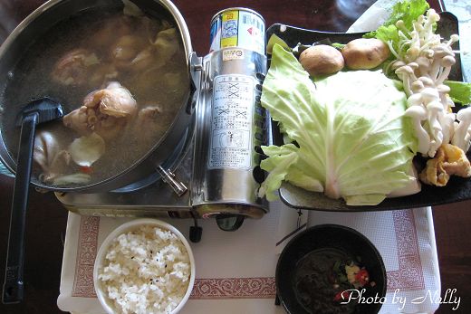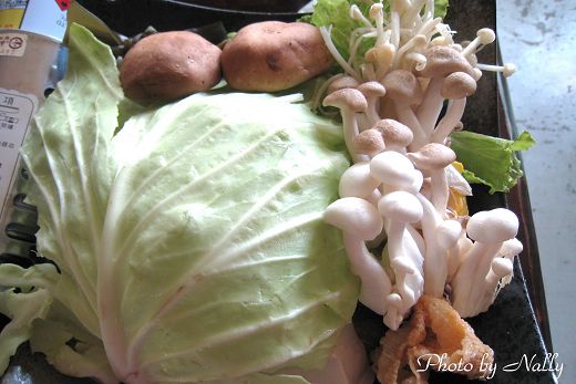 菜色方面有著很多種類菇類,高麗菜放得相當大方,至於鍋內的圈圈雞腿肉則是毫不馬虎