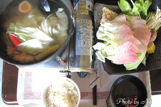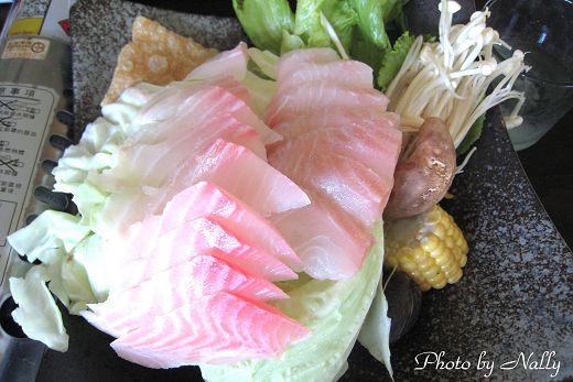 蔬菜量不多,鯛魚鍋的重點在鯛魚,使得菜盤顯得有些單薄
